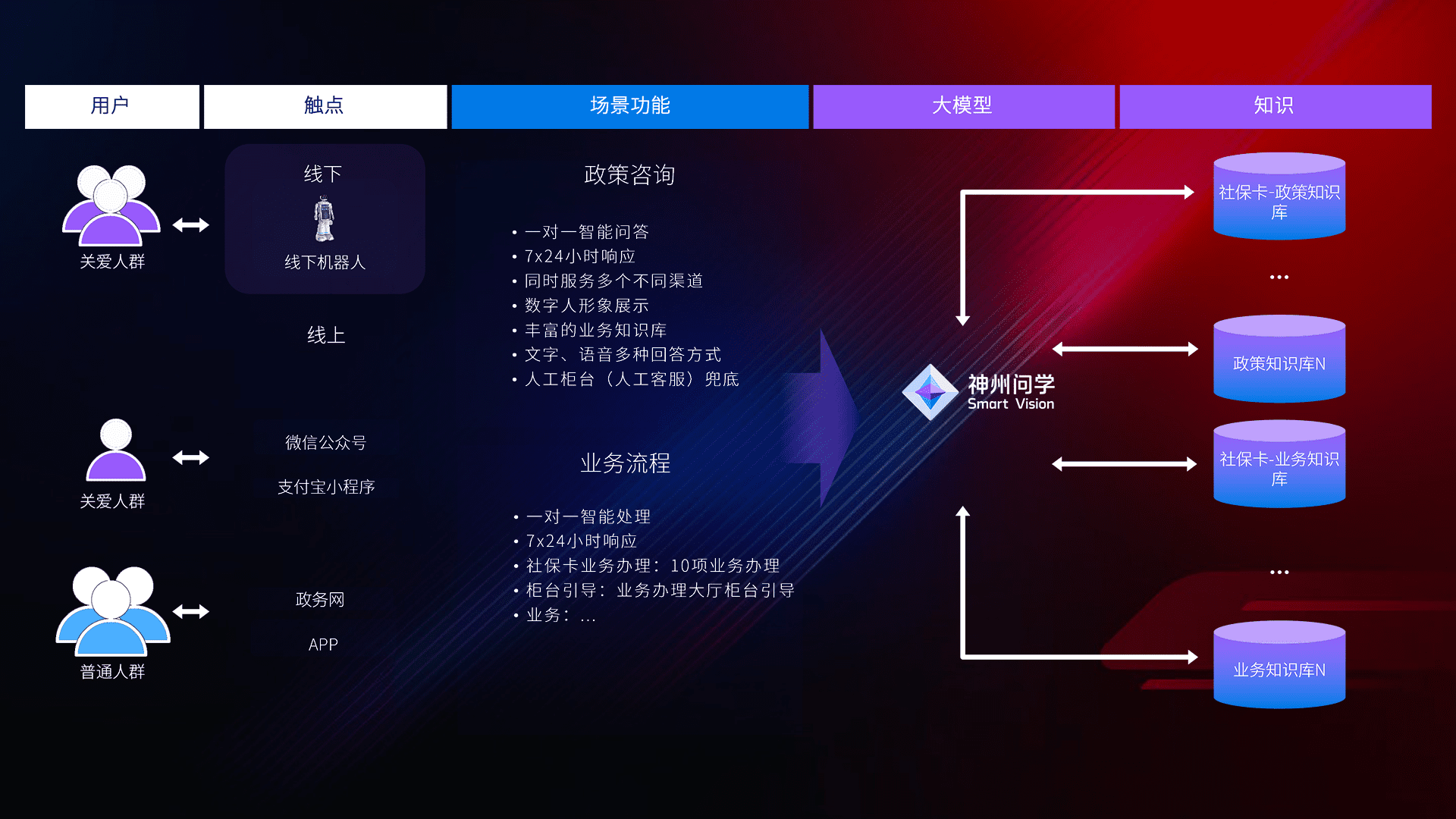 • 线上线下全覆盖:线上提供微信公众号、、、支付宝小程序、、、、政务网、、、app多种渠道,,与线下机器人形成完整服务体系。。
